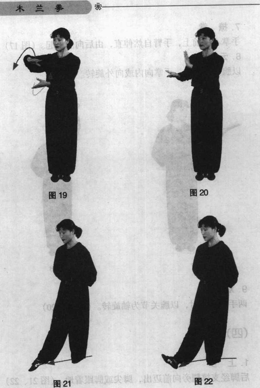 后脚经支撑腿旁向前迈出,脚尖或脚跟着地。(图21、22)