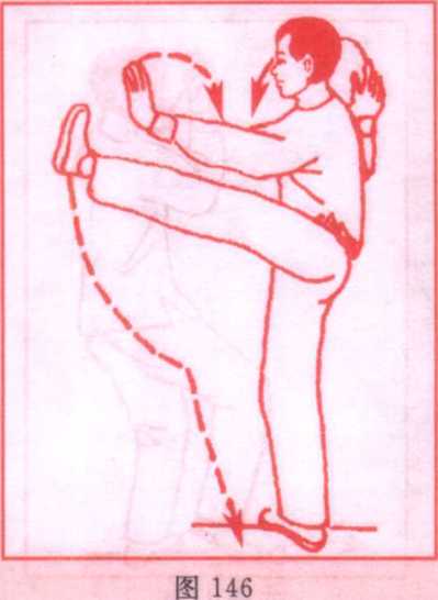 动作同(二三)4,惟手脚和动作左右相反。(图146)