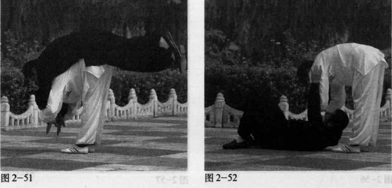 甲双手拿乙双小臂,俯身向下 (图 2-50、2-51、2-52 示)。