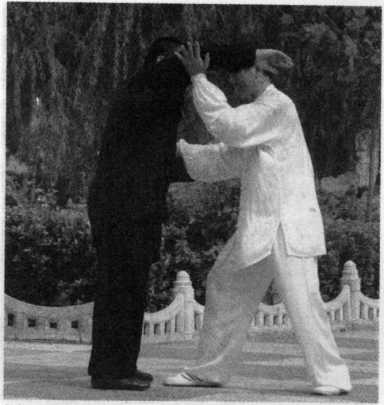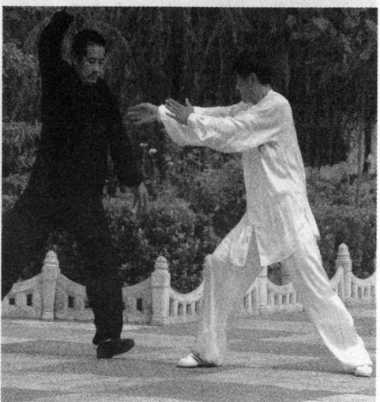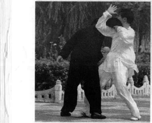 随进步进身,再展臂,弓步前 送(图2-55、2—56、2-57. 2-58. 2-59 示)。