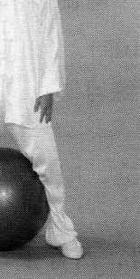 动作一、二可重复练习。此练习通过对健身球的作用与反作用, 由抽象到具体,可以令练习者体会到“腰裆劲”的确切感觉。当没 有球时,也可“无球当有球”,帮助掌握和保持“腰裆劲”的要领。