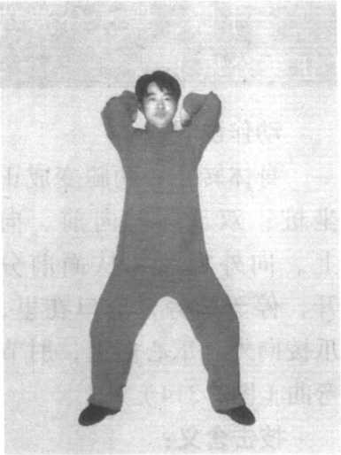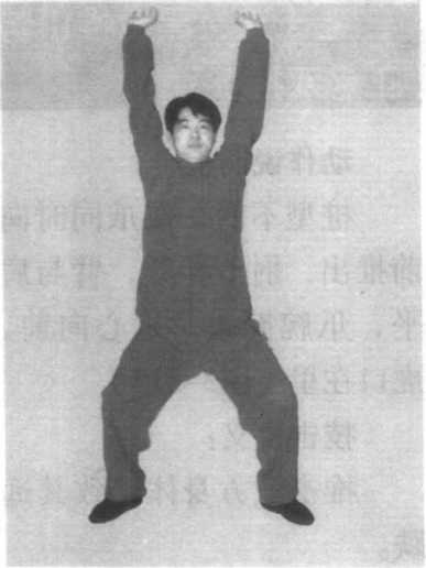 身体转正,两腿变成正 坐桩;双爪同时向前、向 上、向外划弧,从面前分 开,停于两旁,虎口在里, 爪棱向外,爪心向上,肘节 弯曲(图3-314)。