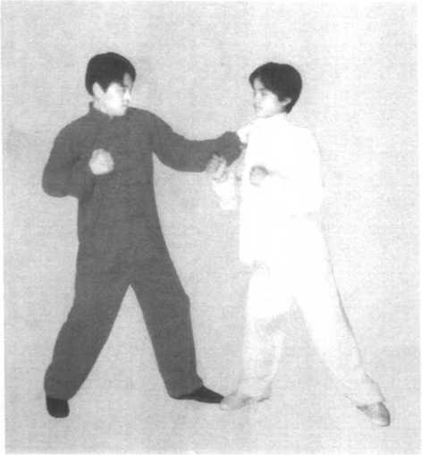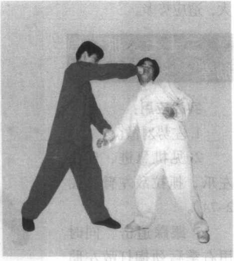 3 .跟踪追击,同时 用右拳猛劲掏打敌下阴 (图 2-71 )0