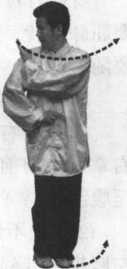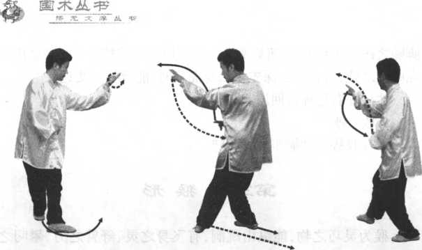 身体右转、左转、再左转,要灵巧,每个动作都 要屈膝拧转,体重向两腿过渡时不能成双重;眼 要随手转。