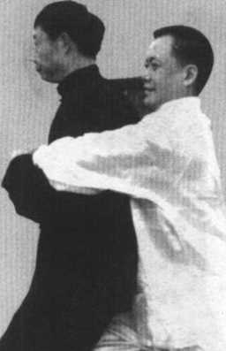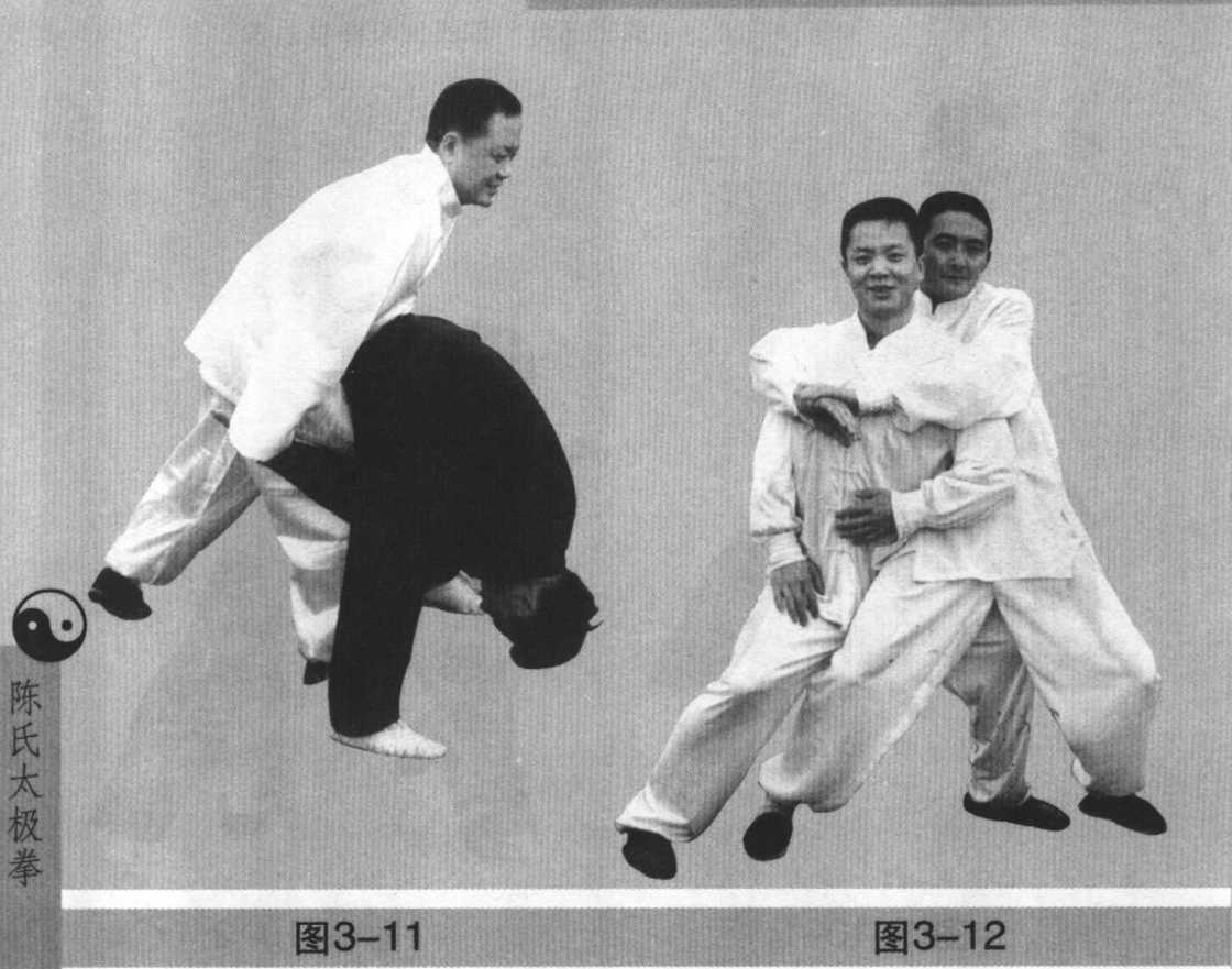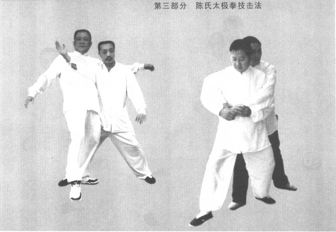 如距离更近,亦可用肩靠,反之,对方以左掌或拳从我 左后面袭来,我以左臂还击亦相同。再如,从我身后以双拳
