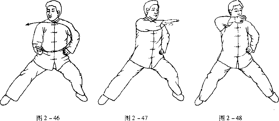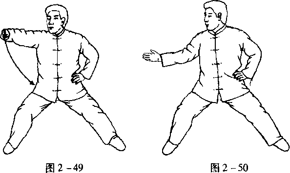 右手正面缠丝同左手正面缠丝,动作要领相同,惟方向相反。(图2 -46至51)
