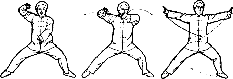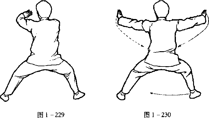 口令3 (图1 -229.230) 重心右移,双手向上外旋分于两侧,略高于肩o