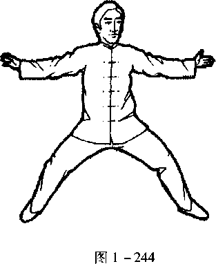 口令4(图1 -243) 双手同时向外分于身体两侧,略高于肩。