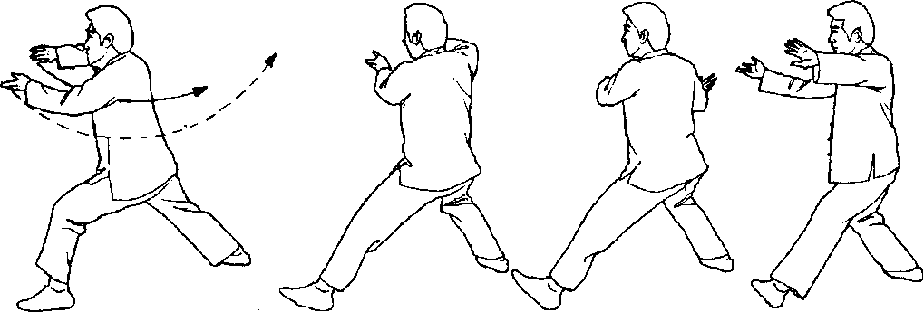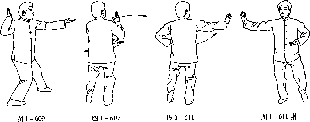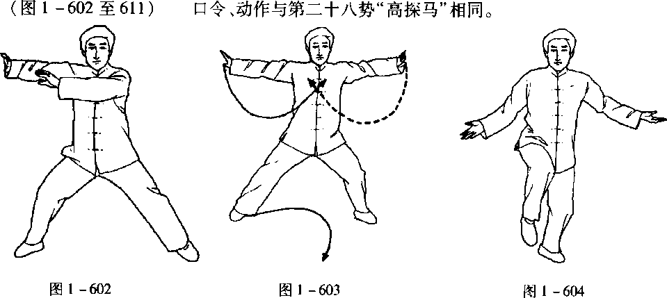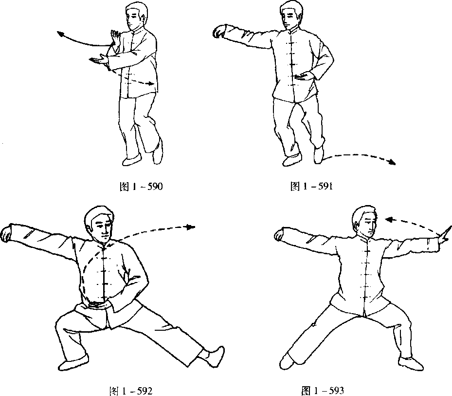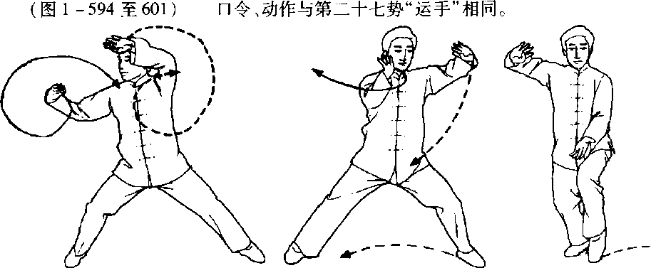 (图1 -590至593) 口令、动作与第二十六势“单鞭”相同。