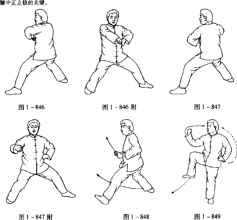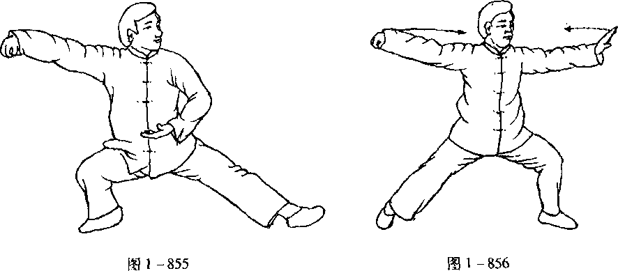 (图1 -853至856) 口令动作与第五势“单鞭”相同。