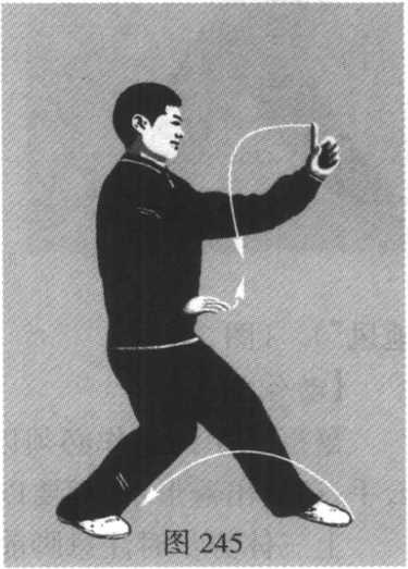 1. 左脚上步 成左三体势步的同 时,向左拧腰带动 两掌一道向左前方 推出(两肘微屈,左 掌在上、右掌在下,