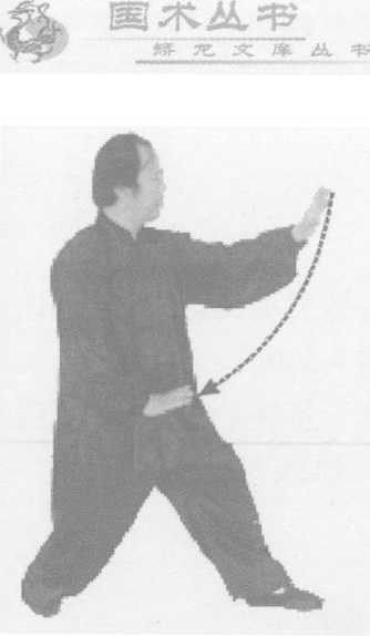 接上式,右脚向前上一步,离中线45。,左脚在后不变;同 时,两拳外旋,拳心朝下斜向前,经胸前向前上瓒,高与口平(图 4-214)0