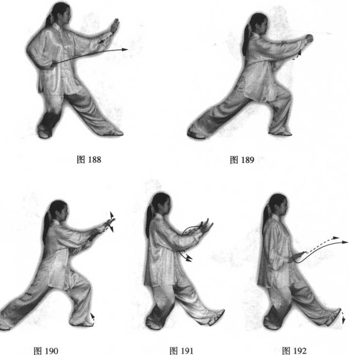 ②其余动作与前“进步搬拦 捶”图48、49的说明相同(图 188、189 )o
