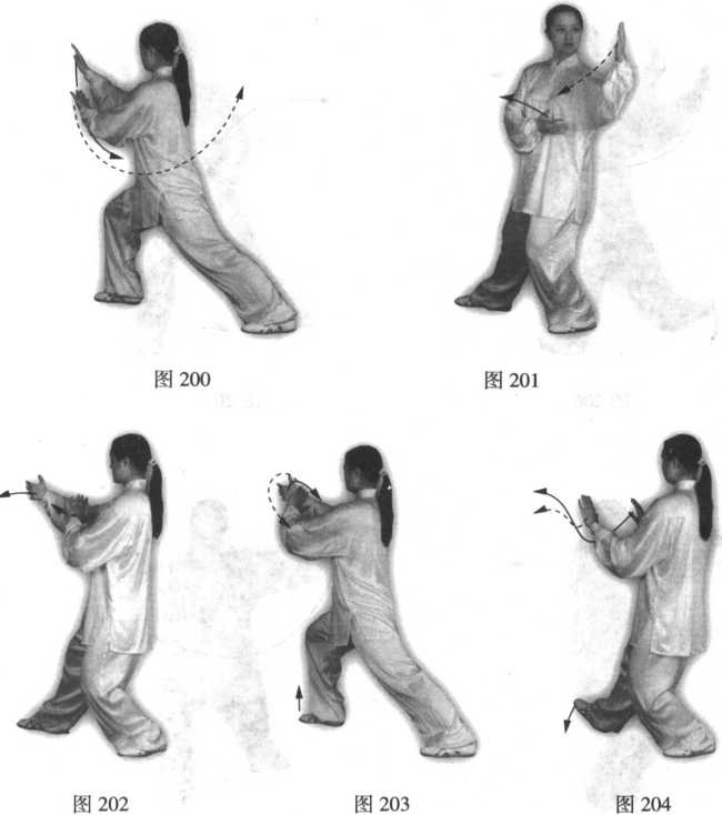 191191动作及要点均与前 “斜揽雀尾”式相同 (图200~205)。