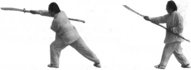 向外;左手握下把向前横扫腰部,把尖朝前,眼视 前方(图8-39 )□
