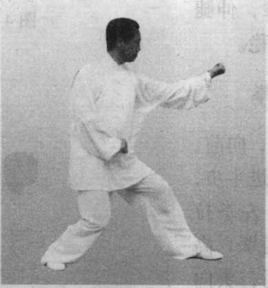 左足上步落地与左拳横出要整齐一致,两拳的拧旋翻转和 出入要协调一致,完整如一O