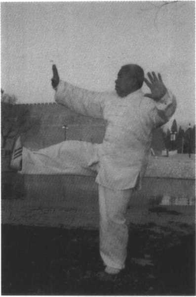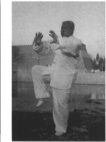 要领:连续三次独立支 撑动作是武式太极拳竞赛套 路设计的难度动作之一,身 体的稳定支撑能力是该势的 关键技术,要做到提顶、吊 裆、身体中正、舒松自然,实 腿要精神贯注,两手的内合、 外展与身体协调配合,意识 集中,保持好各条身法是控制周身平衡的关键。