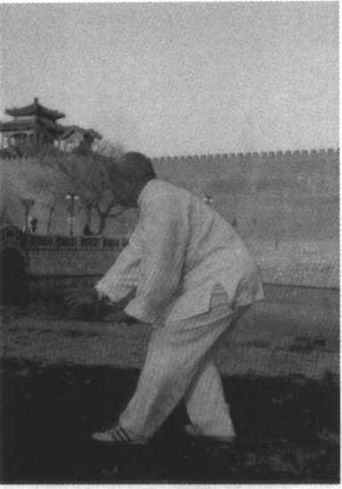不可低头、猫腰、凸臀,要敛臀坐胯,胸背同时松沉,保持好各条 身法。