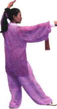 (2) 劈剑时,动作幅度小。臂应伸直,以肩为轴抡劈。