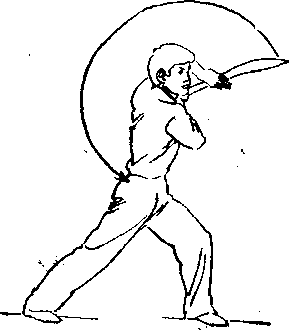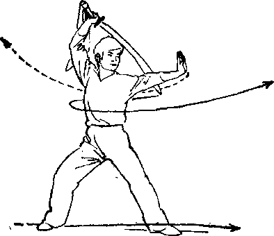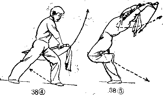 ? 上体后右手持再脚临栩I向左程染前上方水平 ^环一周,刀刃向左.刀尖曲座好紧贴刀背# (图38⑧》