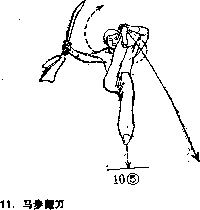 @身体经左向后转,右脚向右上一步> 右手持刀向右 平扫」图10②)