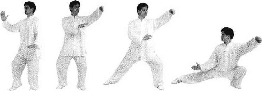 After your right tiptoe being touched the ground, you should raise it a little bit first, and then push down. The other parts of this form are the same as Form XVI, reversing the "right" and "left".