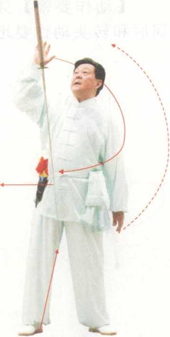 【动作要领】当持刀向左划弧时利用刀的贯性,刀柄 向上时迅速抛出;不可歪斜。接刀要迅速,身体要协调, 此势要多练习,方能熟练,运用自如。
