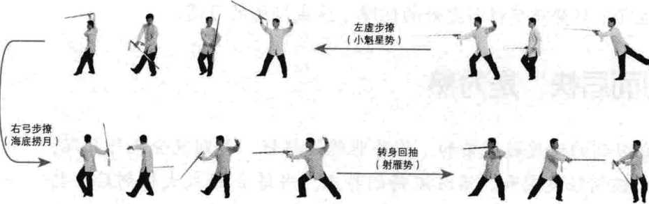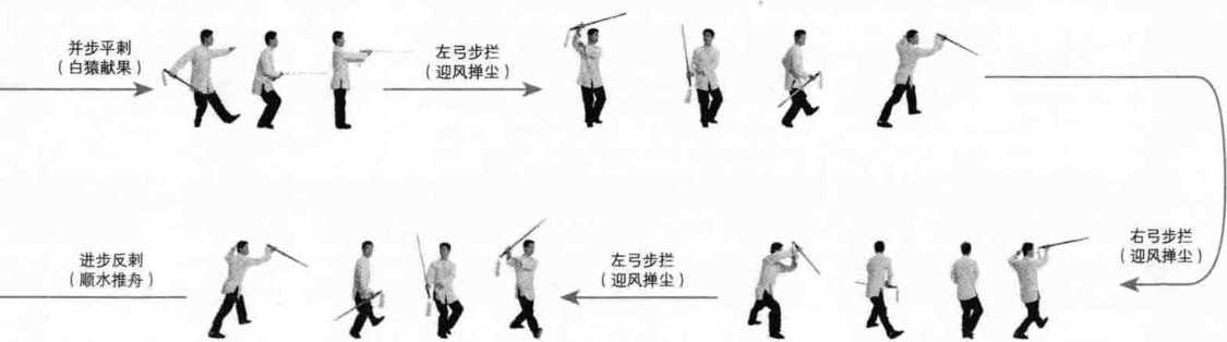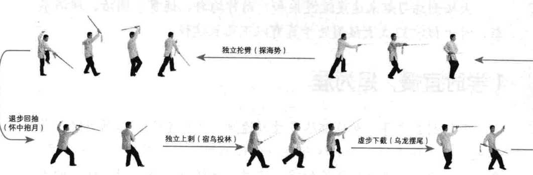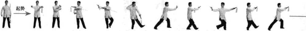 太极剑的速度缓慢柔和,但并非越慢越好,否则就会死气沉沉, 失去太极剑轻灵柔和、活泼流畅的特点。当练会32式太极剑后,要 有一段时间的熟练过程,需要反复练习、加快速度练习。这样练习的 作用是可以很好地化解套路中不连贯、僵硬的动作。