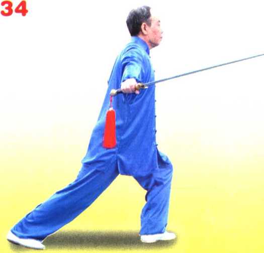 左脚向前活步,重 心前移。(图34)