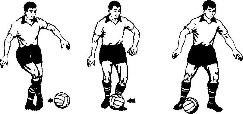 这是用脚内侧部位去接球的一种技术。由于脚触球面积大, 动作简单,较易掌握。在比赛中,经常使用这种技术去接各种地 滚球、平球、反弹球、空中球。