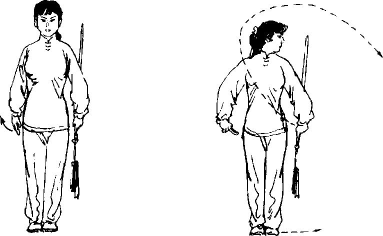 (1)两臂屈肘微上提,右腕稍内扣;同时向左转头,目视左 前方(图158 )。