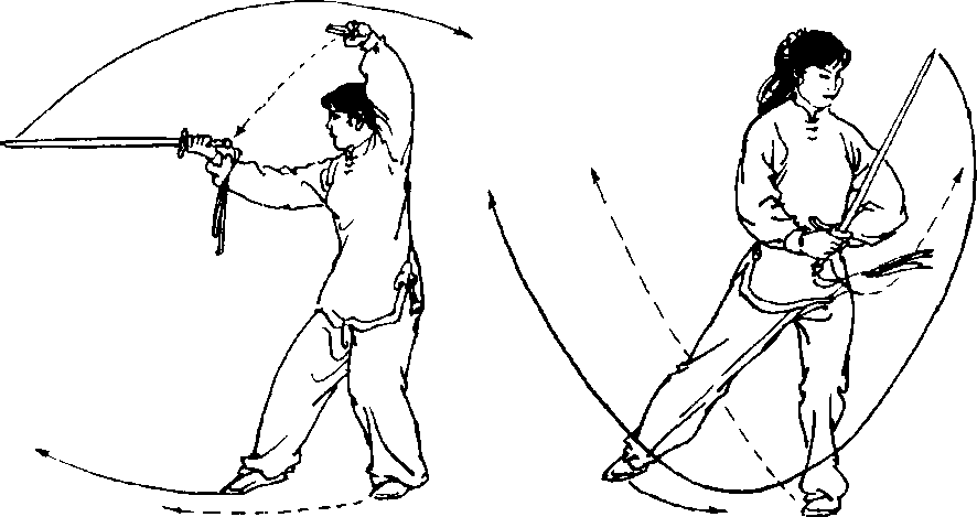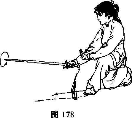 【要点】上步要敏捷,身械配合要协调,截腕剑划弧不宜太 大。