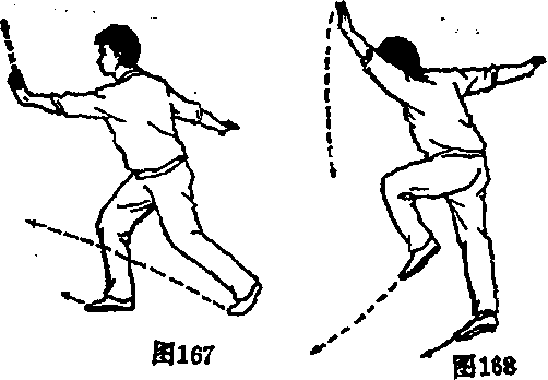 (2)身体左转,右腿向前上步,左腿前蹬(图167)“