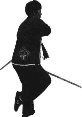第三章陈式太极双剑习练要领 】第三章陈式太极双剑习练要领 】(3)身体继续左转90度,重心右移,左腿提起向前摆脚上步, 双手持剑右下左上于体前,如图3.21.4、图3.21.5所示。