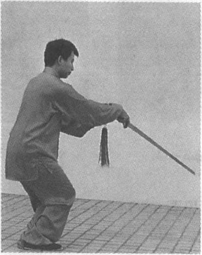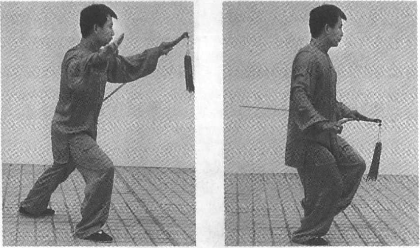 3.3.2 收脚落剑(见图 3 - 12 ~ 3 - 13)o Withdraw foot and drop sword (Fig.3-12-3-13).