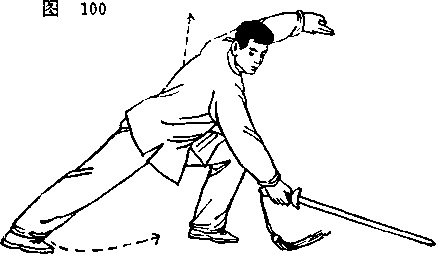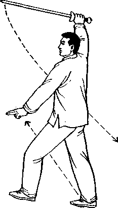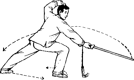 妄点:立步右手持剑由左向右抡劈,要以腰带动.