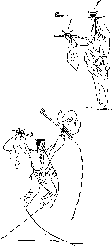 身体腾空上举,目视前方。(图38)