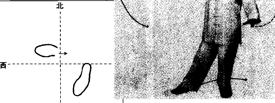 转体不能凸臀、塌腰。转动时以腰为轴,上下配合协调一致, 摆脚和转体要同时完成,剑随腰摆。