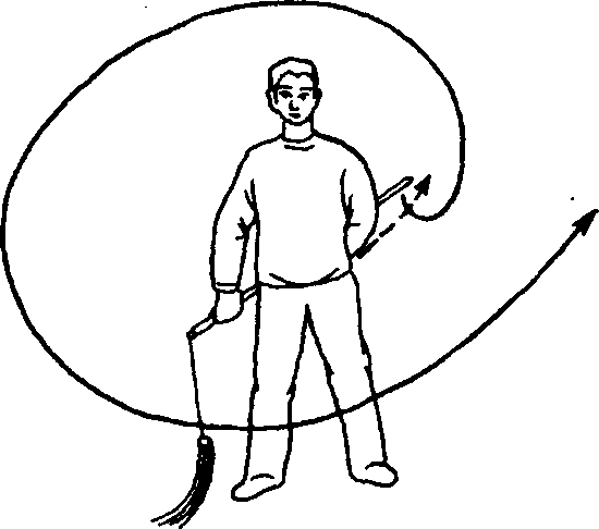要点:前两动要连贯起来,不可停顿。初学者先不要学扔 剑动作,可以直接由左手接过剑。练习扔剑动作,要选择场地, 在草地上或土地上练习,不可在水泥地上练,防止摔坏器械。