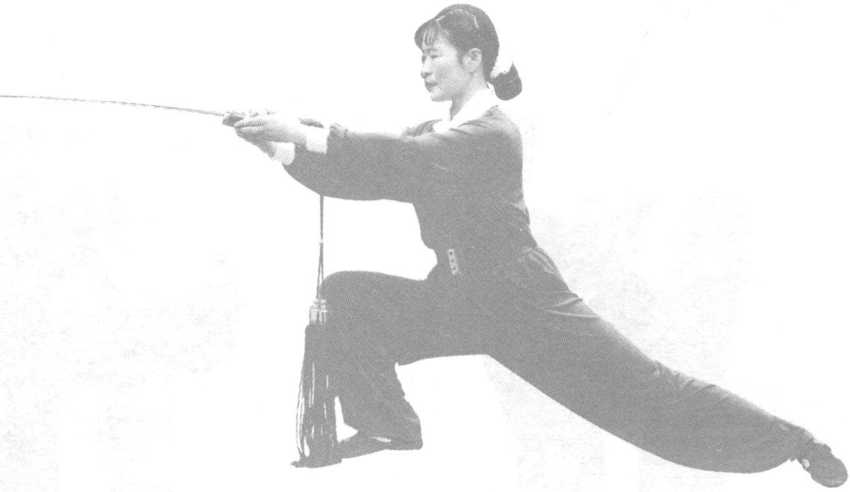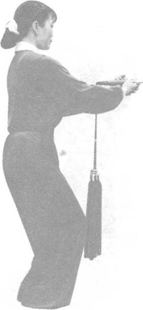 剑随右脚并步屈肘前 平刺(7位),高于腰 (图 14-4 ) °