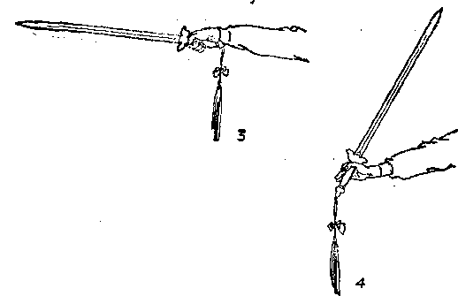 ③钳把:以拇指、食指和虎口的挟持之劲将剑柄钳住, 其余三指自然松附于剑柄(图4 )。