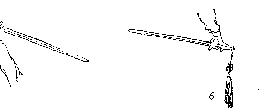 ⑤ 压把:由满把握住剑柄,松开无名指和小指压于剑 柄后端上面,使剑身横平(图6)。