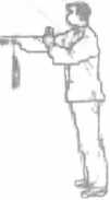 剑尖向前,或左或右横出,力达剑尖或剑刃前端 为击。击剑又称平崩剑。击剑须抖腕发力,手心向 上,剑尖快速向右或向左甩摆,力达剑端。击剑分为 正击、反击。向左平崩为正击;向右平崩为反击。击 剑多用满把和螺把(图5-2-12)。