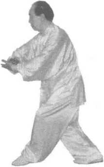 2. 右击拳:身体左旋,两手腕随之向左前方棚挤,