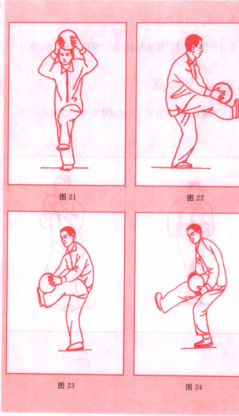 是以活动胯膝足根为主。下接踢球四个姿势(图22?26)