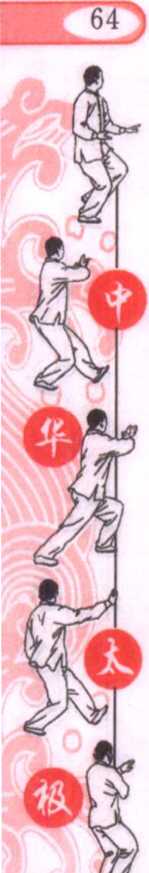 身体微向右转,面向前方,右脚前进一步,左脚屈膝提起成