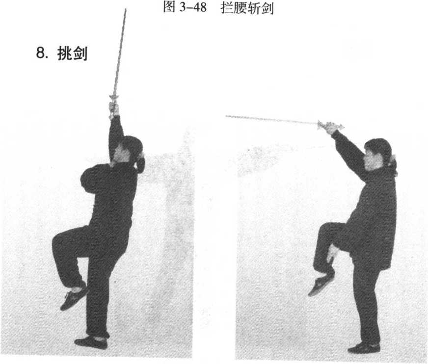 图3-49直挑剑 图3-50平挑剑图 3-51上截剑图3-52反手截剑图3-53下截剑图3-54斜截剑
