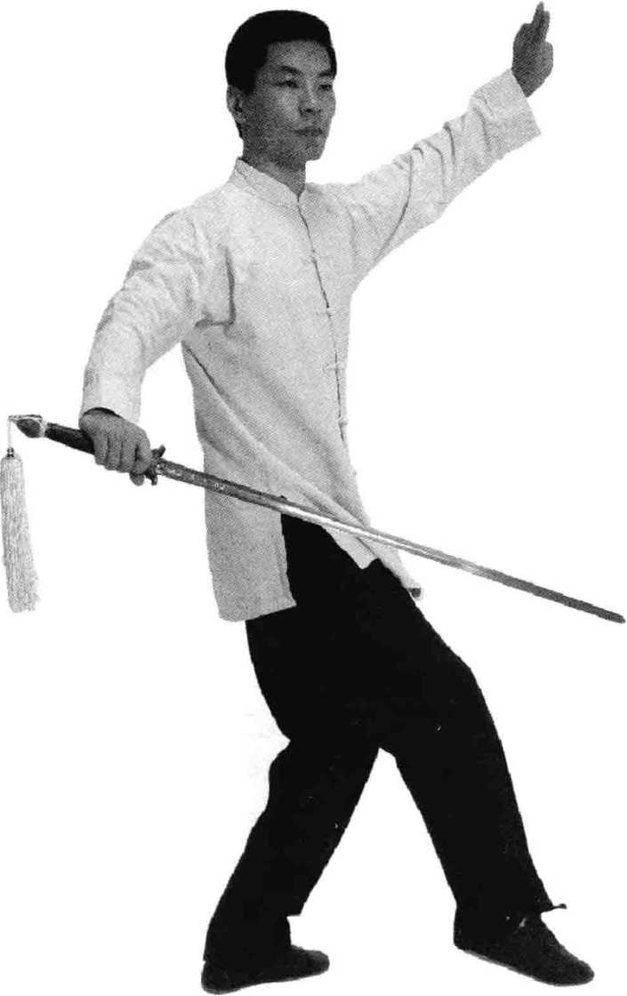 两脚前后站立,重心后移至后腿,屈膝下蹲,后脚外摆45度, 前脚脚尖点地,脚尖正对前方。左脚在前为左虚步,反之为右虚步。 成虚步时,应注意松腰坐胯背部平,身体重心几乎完全落在后面的支 撑腿上。