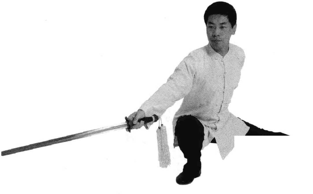 两脚开步站立,一腿屈膝全蹲,大腿贴紧小腿,膝关节微外展, 另一腿伸直平仆接近地面,脚掌内扣。两脚均要全脚掌着地。左腿平 仆为左仆步,反之为右仆步。仆步时应注意上身尽量保持正直,脚跟 不要离地。
