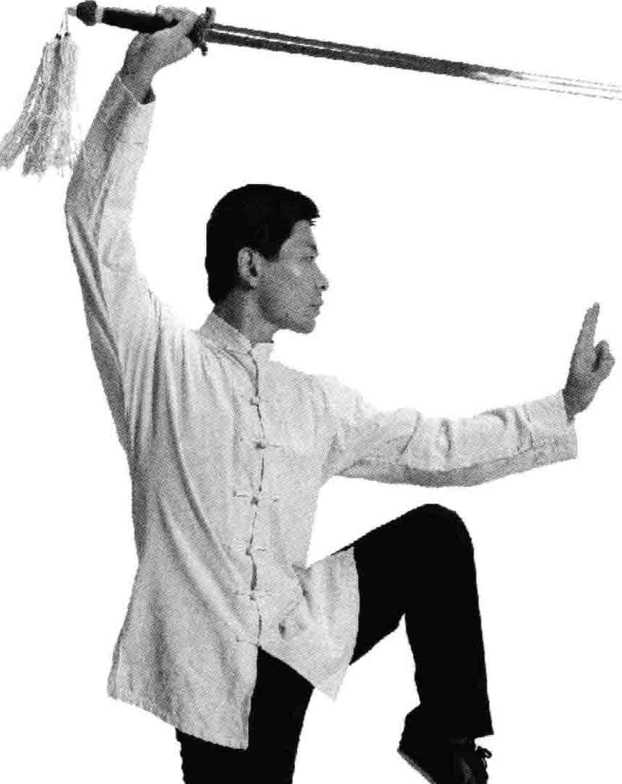 一腿自然直立支撑,另一腿在体前或体侧屈膝提起。小腿自然下 垂,顶头、敛臀、腰下沉,支撑脚五趾抓地。